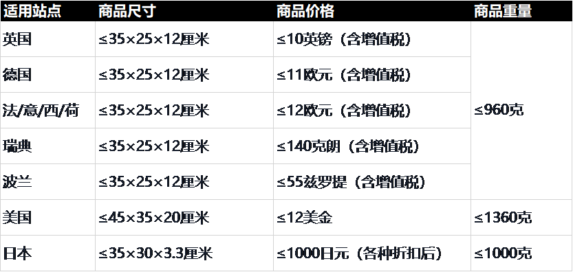 目前该计划已经在美国、日本、英国、德国、法国、意大利、西班牙、荷兰、瑞典及波兰10个站点上线。加入“轻小商品计划”,将享有以下优势: