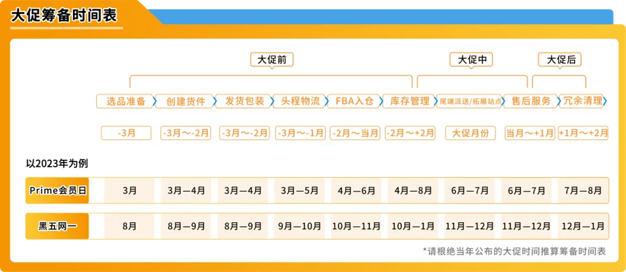 熟悉大促时间并合理安排节奏,是把握商机的关键一步。以下是一份整理好的黑五网一筹备时间表,将助力卖家更精准地预判物流节奏,从而确保能够顺利参与黑五网一促销活动。
