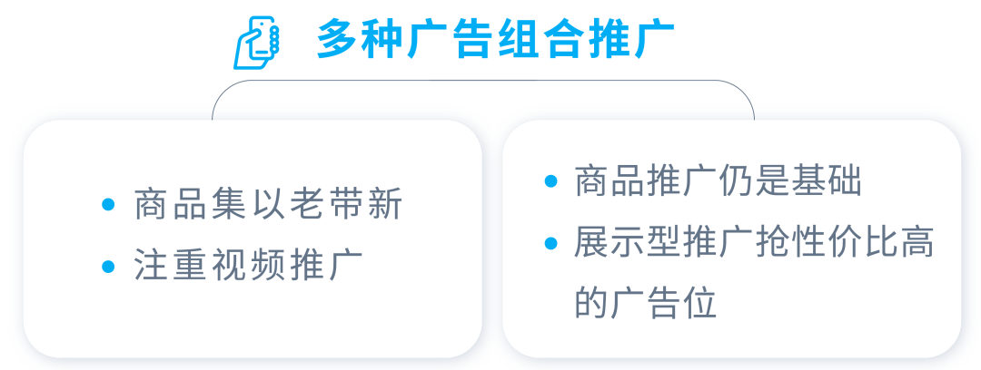 例如:通过分析商品推广广告中消费者的消费特征(如下单时间段)来提高广告对消费者的吸引力。通过品牌类广告投放挖掘消费者的进阶需求,从而强化消费者对广告的印象。最后利用品牌推广视频进一步打动消费者。