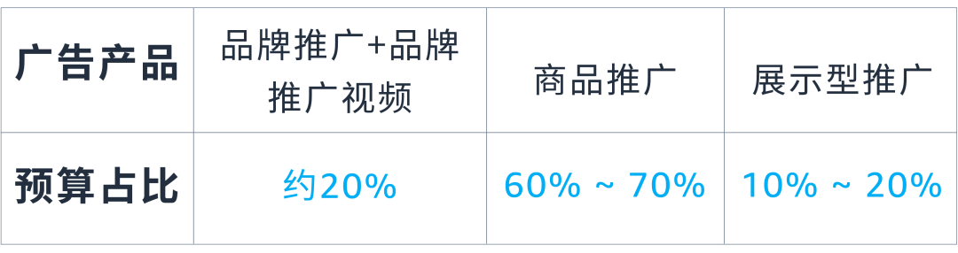除了提升推广效果,降低CPC,在新品推广时利用品牌推广+品牌推广视频+商品推广+展示型推广这一亚马逊广告技巧组合拳,帮助我们实现在合理预算范围内冲击新品榜单(Hot New Release)。广告产品的预算配置占比可参考以下建议: