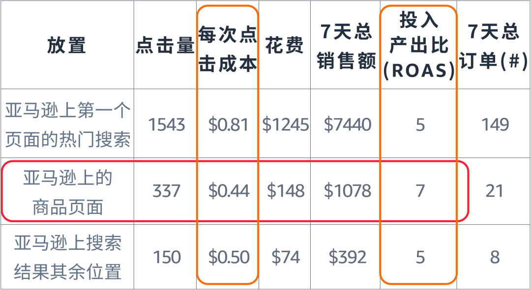 那么从广告效果来看,我们要如何去衡量广告位的表现呢?来看一个案例:某卖家下载广告位报告后发现,商品详情页位置的投入产出比(ROAS)最高,是不是就应该加大投入呢?
