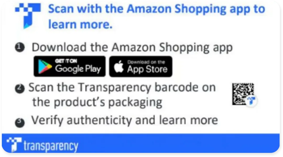 加入Transparency透明计划的品牌卖家,可以在商品包装里置入一张小卡片。买家在收货的黄金时刻,可以通过扫码这张小卡片,访问落地页,直接与品牌互动!
