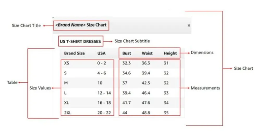 在确保买家体验上的一致性的同时,也有助于品牌建立可信赖的形象。如果卖家的产品有专用的单品尺码表,则继续使用单品尺码表。