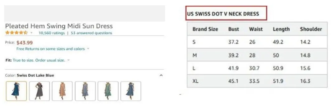 为了解决大家的困扰,亚马逊整理了优质的服装产品详情页面的四大秘籍——从产品的尺码信息、颜色、描述以及造型搭配这4个方面进行优化,供卖家们提前学习避坑,降低退货率,一起来看看吧!
