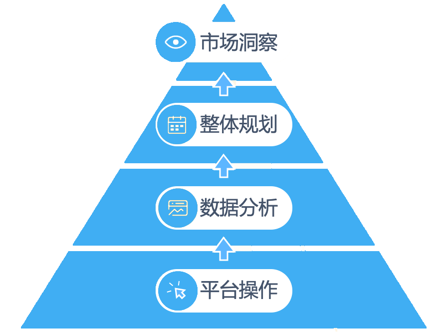 更为重要的是设置一个独立于各职能部门、统筹全业务链路、共同达成业务目标的运营!理想中的运营应当掌握4大关键能力,您可以对照下方运营能力进阶金字塔,关注公司当前人才结构是否与现阶段发展相匹配,结合实际情况和需要,优化调整团队。