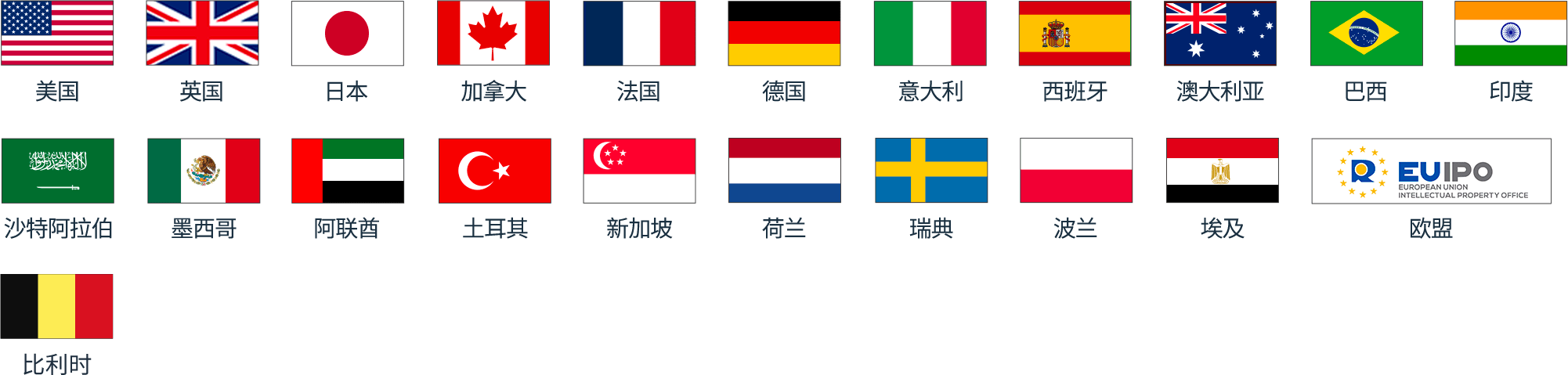目前,亚马逊品牌注册接受以下国家/地区政府商标局签发的商标 :