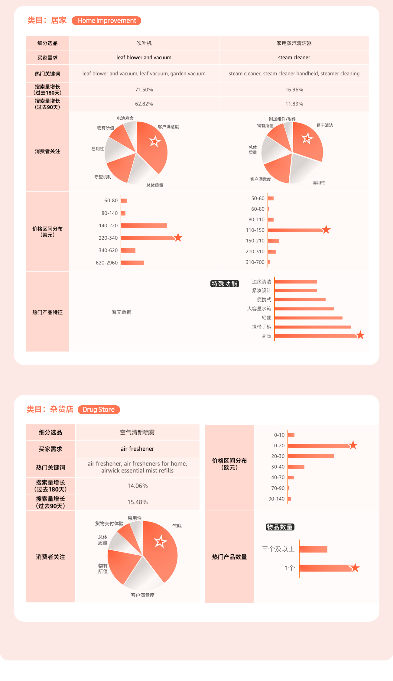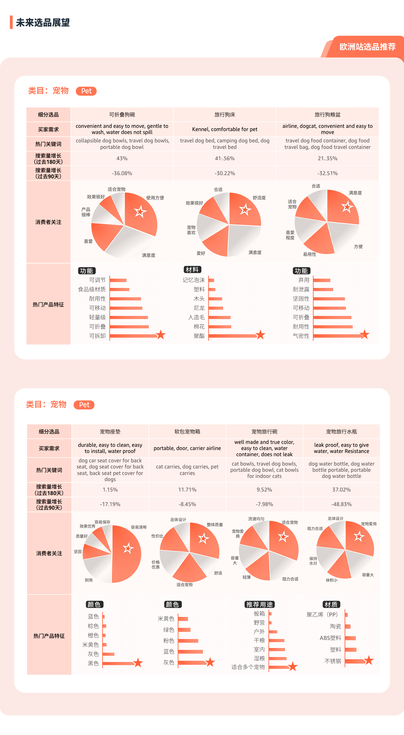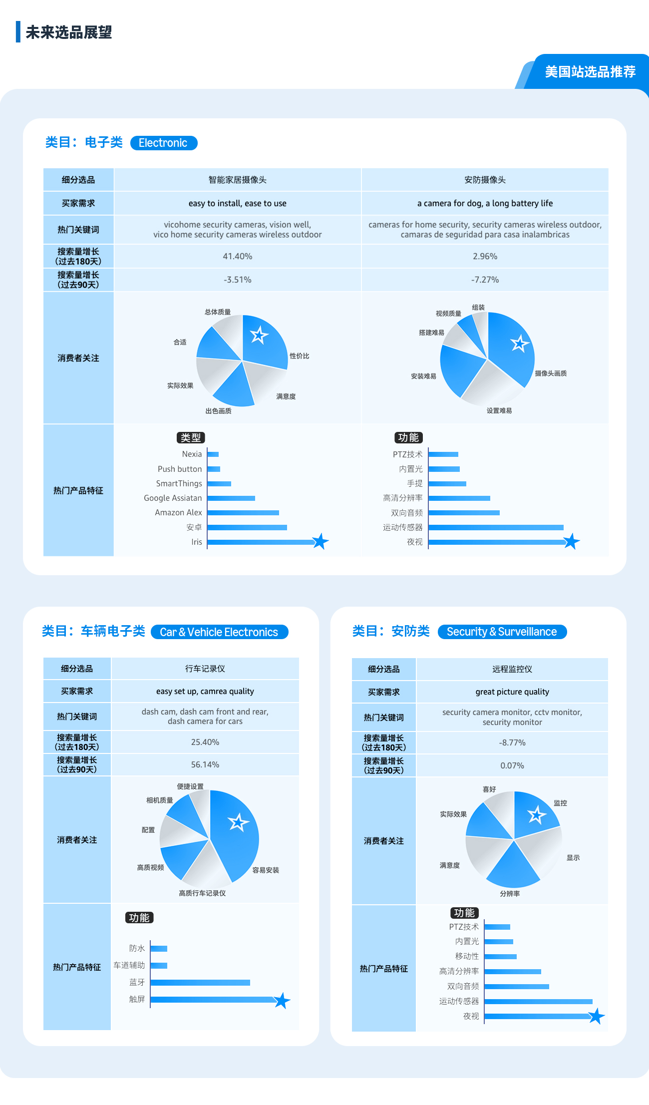 商机探测器及选品指南针为您提供精细数据支持,呈现高需选品具备的特征及消费者真实反馈,让现有产品更进一步!