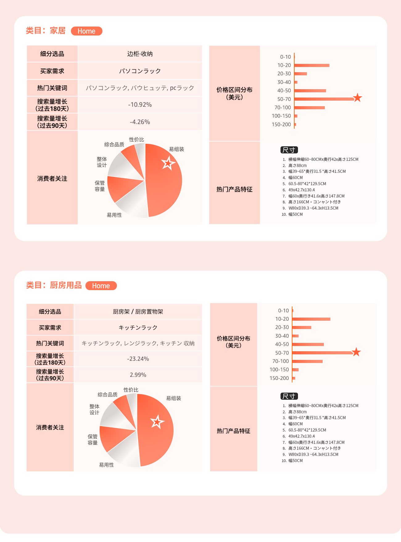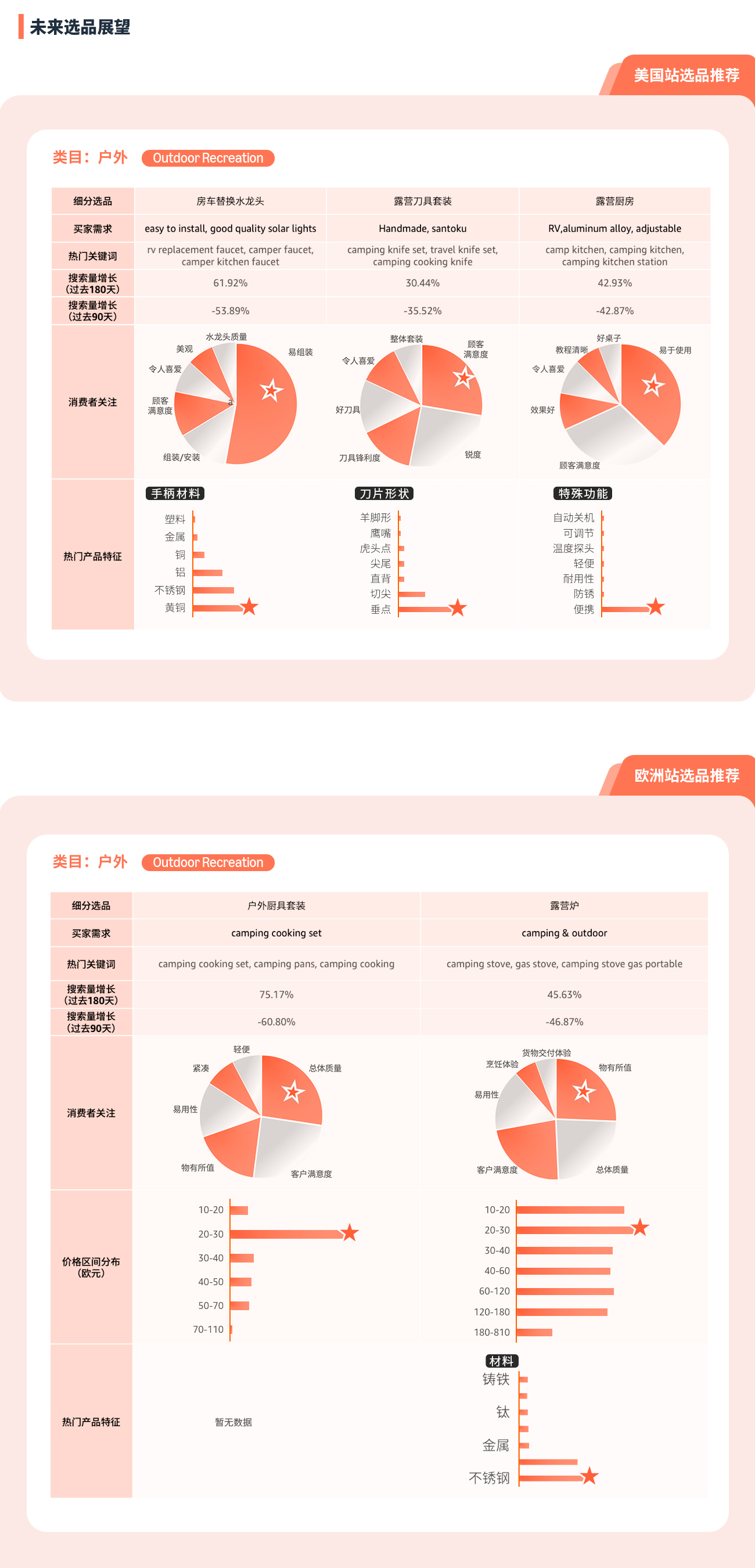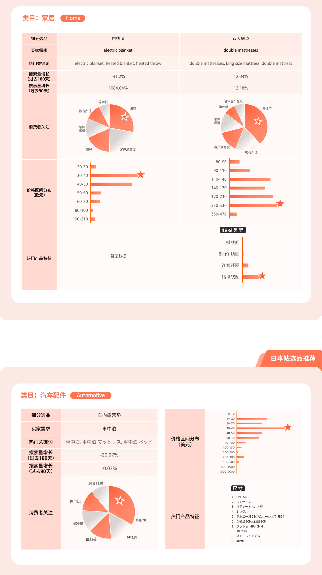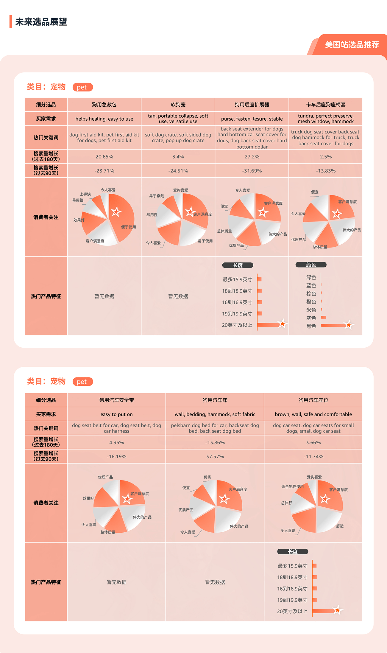 商机探测器及选品指南针为您提供精细数据支持,呈现高需选品具备的特征及消费者真实反馈,让现有产品更进一步!