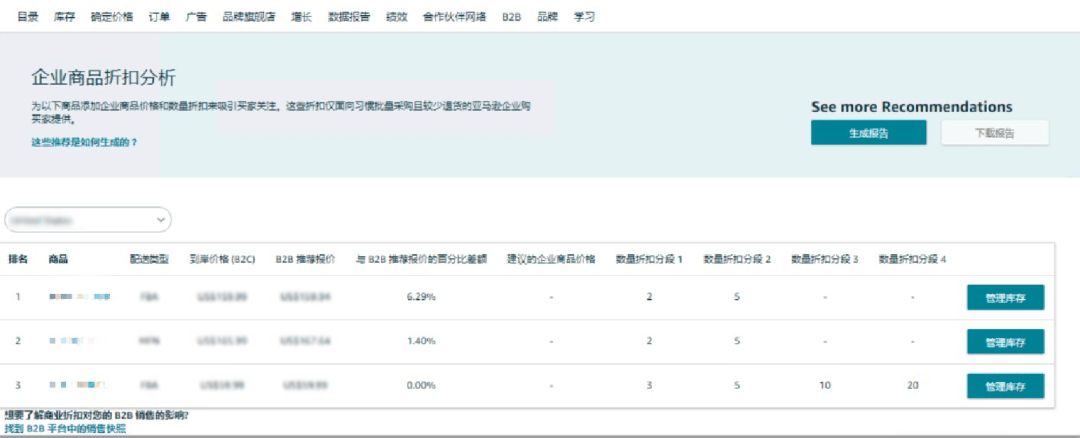 工具使用路径:卖家后台 > B2B > 企业折扣分析