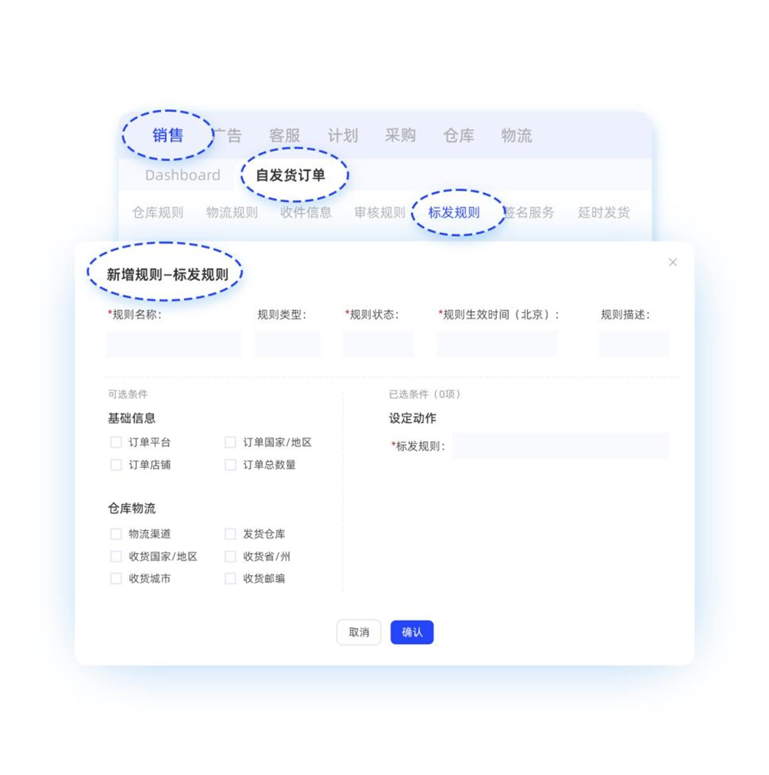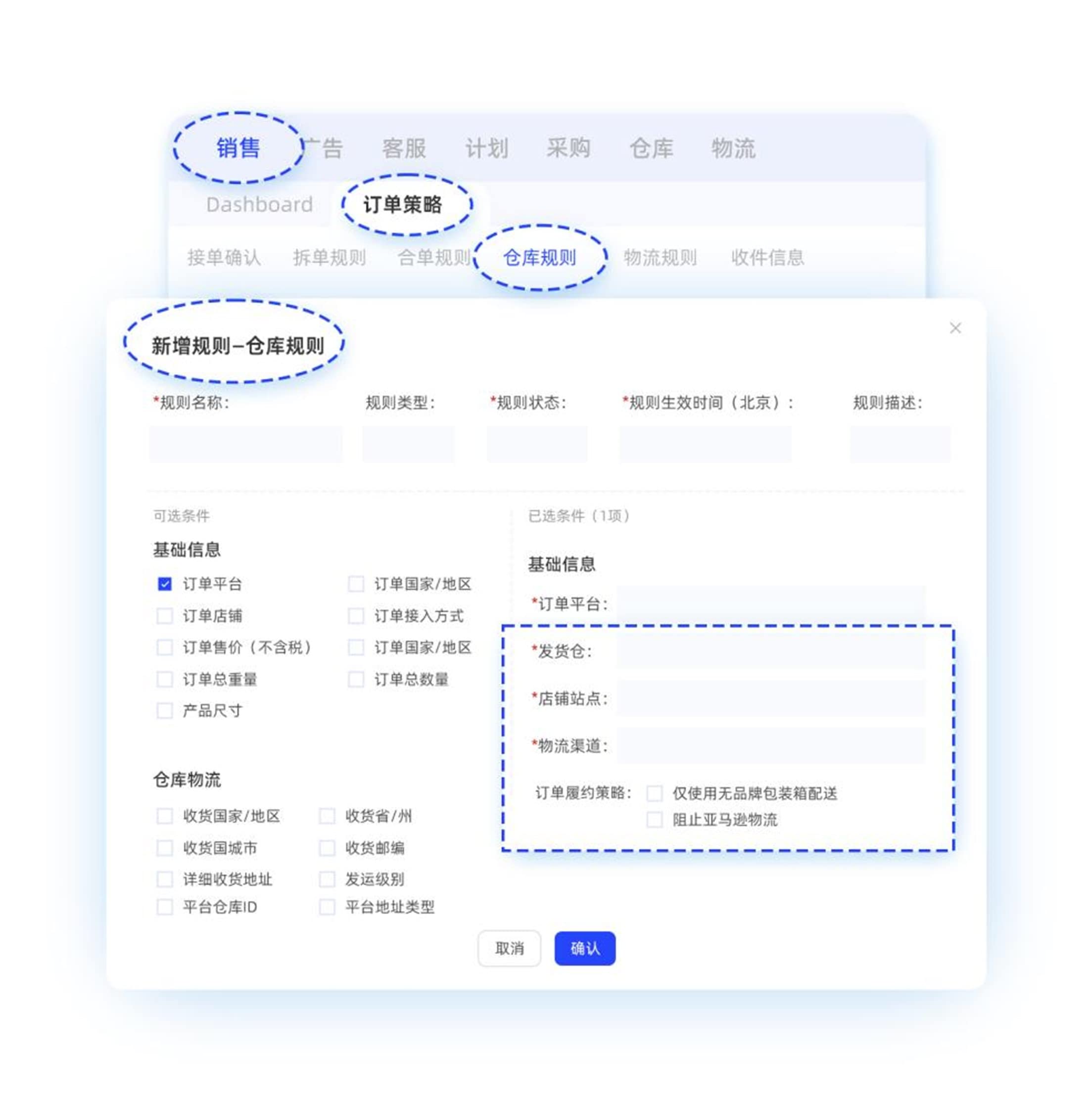 c. 在【自发货管理-订单策略】完成仓库规则和标发规则设置(该步骤设置完可实现自动转FBA)