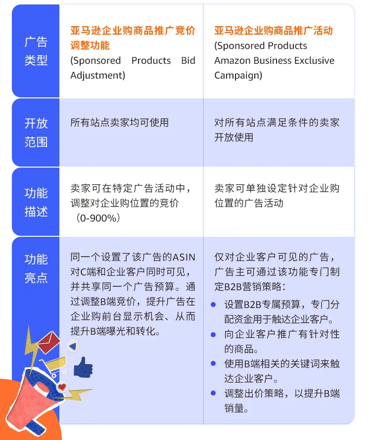 亚马逊企业购面向B端企业买家的商品推广,可以帮助我们精准触达企业买家。今年亚马逊企业购上线了商品推广竞价调整功能,在上个月,我们用不到两百美金的广告投入撬动了超过两千美金的销售量。同时,我们还参加了企业购专属商品推广活动(Sponsored Products Amazon Business Exclusive Campaign)的测试,更是产生了超过投入 20 倍的销售量。我们发现在新兴站点做B端商品推广的效果特别好,比如加拿大站点,接下来还会持续优化和观测。