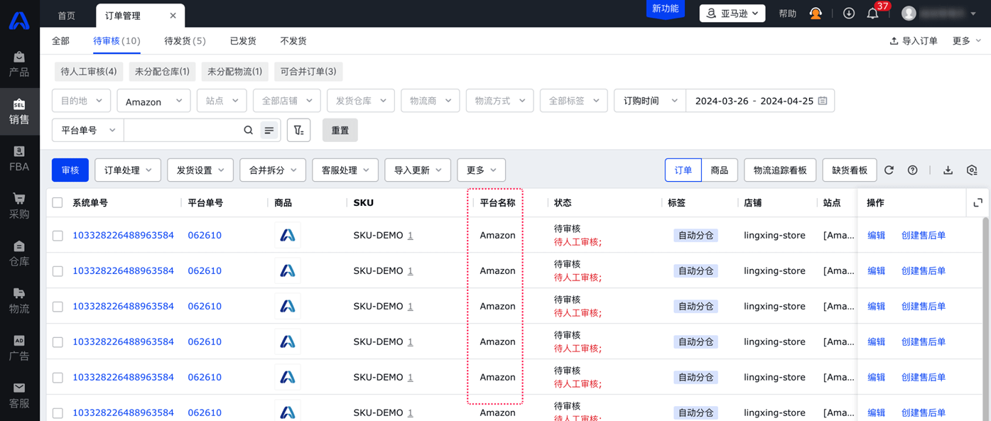 所有平台订单在领星ERP系统内可统一查看与管理,无需登录多个平台账号。