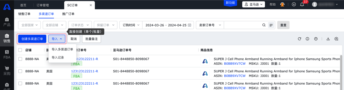 支持引用现有订单数据创建多渠道订单,进行补发;且支持批量导入创建多渠道订单,高效管理订单。