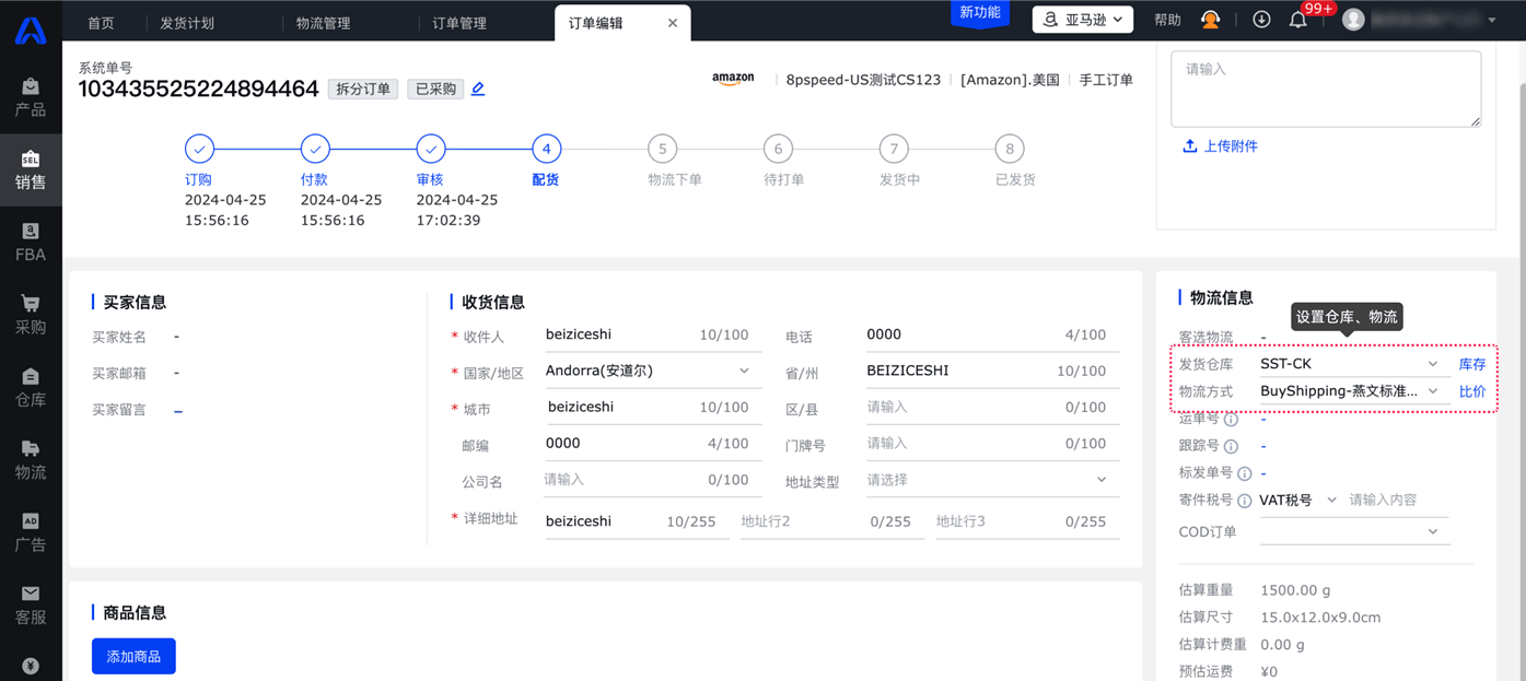 ● 订单快速补发:直接引用原有订单信息快捷创建补发亚马逊订单