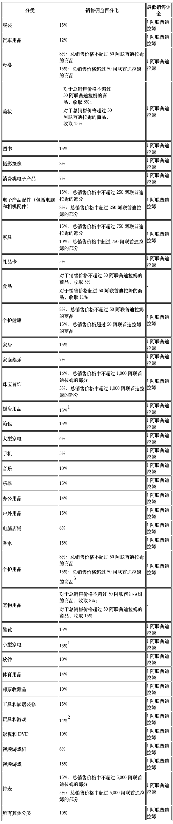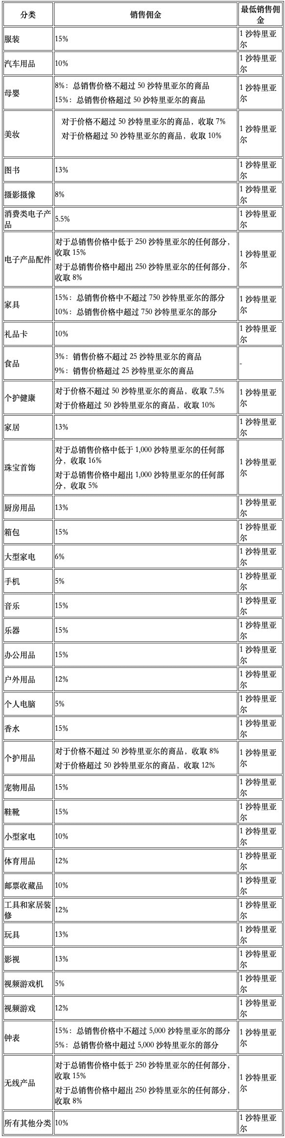 亚马逊商城根据不同品类收取不同比例的销售佣金。详情请参考各站点销售佣金细则:阿联酋站、沙特站。
