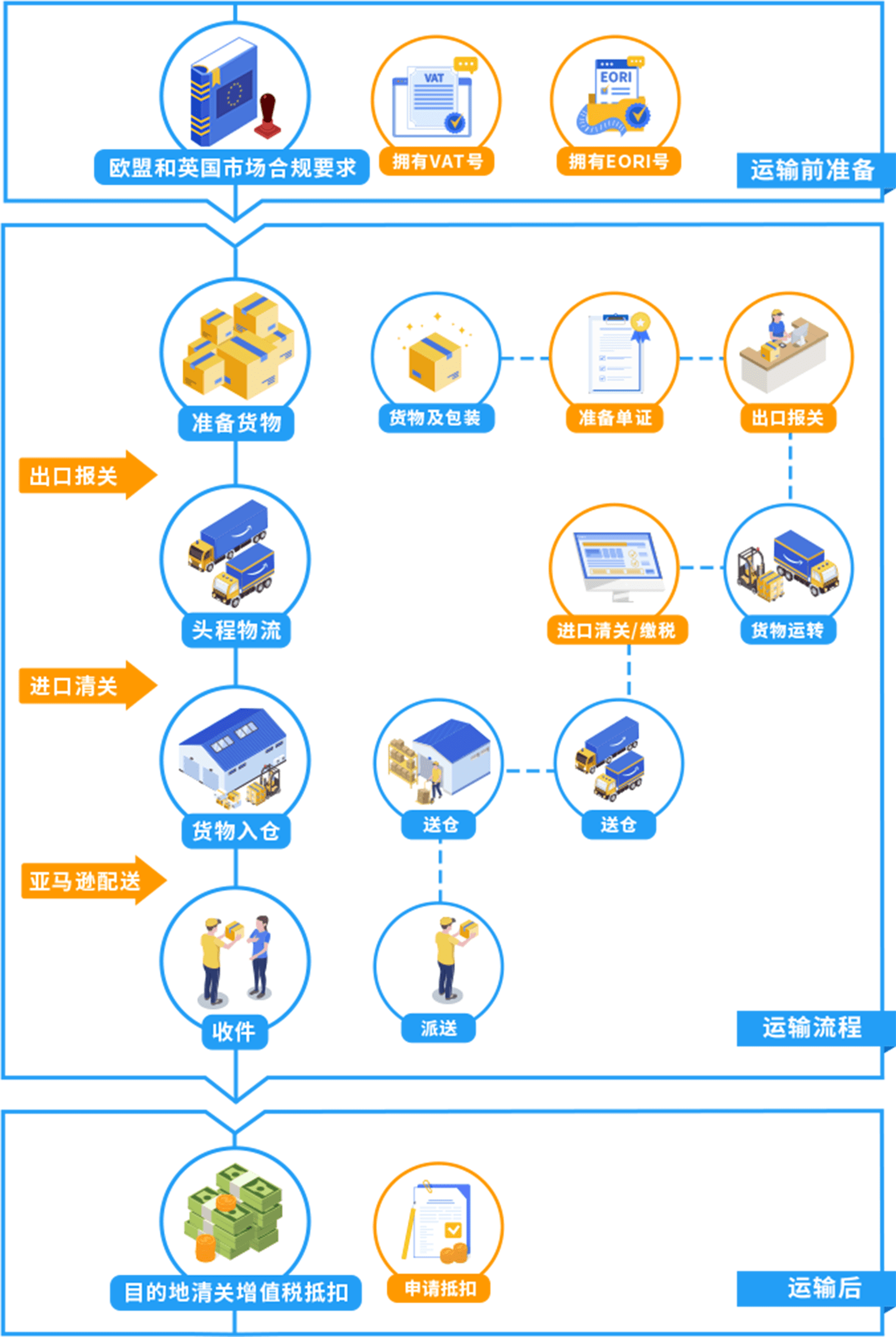 了解跨境物流必经的重要环节、常见的物流运输方式,以及亚马逊物流解决方案。