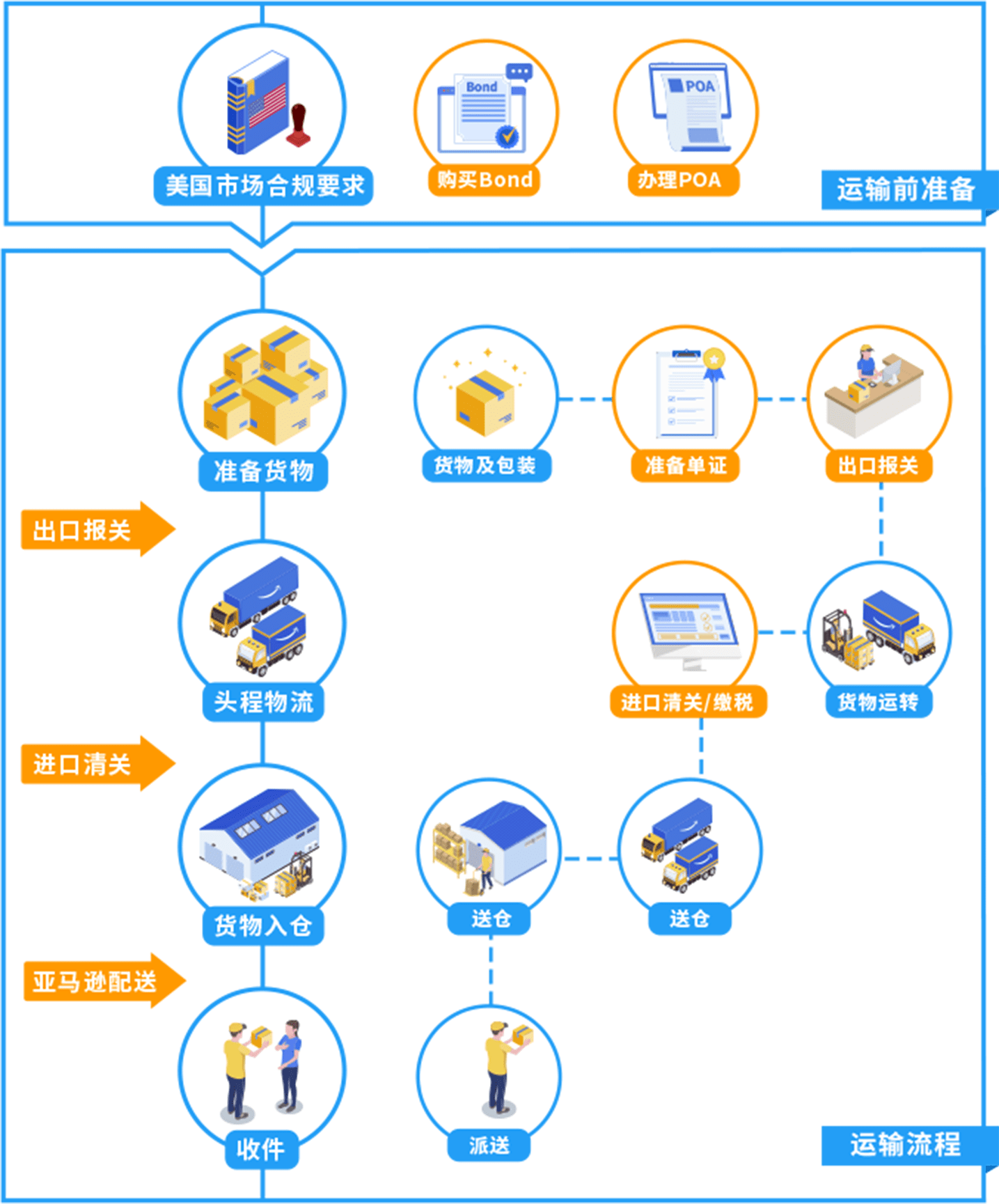 ● 浏览亚马逊跨境物流服务指导手册第二章:2.6 进口清关流程,了解更多 Bond 和 POA 的详细介绍。点击这里,查看路径。