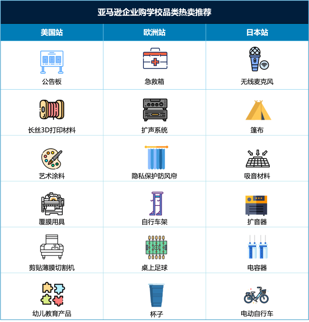 亚马逊企业购学校品类热卖选品推荐