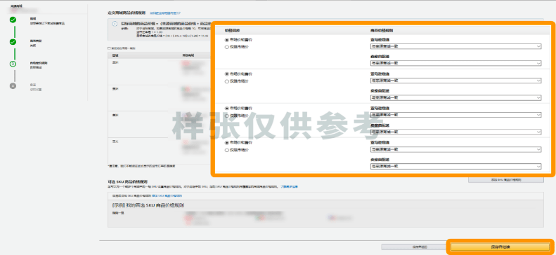 4/定义默认商品定价规则,然后点击“保存并继续”。