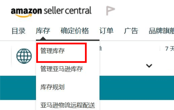 ① 在“库存 - Inventory”下拉菜单中点击“管理库存 - Manage Inventory”