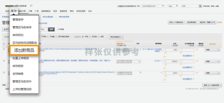 1/匹配现有的商品信息(跟卖):从“库存”下拉菜单中选择“添加新商品”,然后搜索你想在亚马逊上销售的商品。如果你搜索商品编码(如UPC、EAN、JAN或ISBN),搜索结果会更准确。