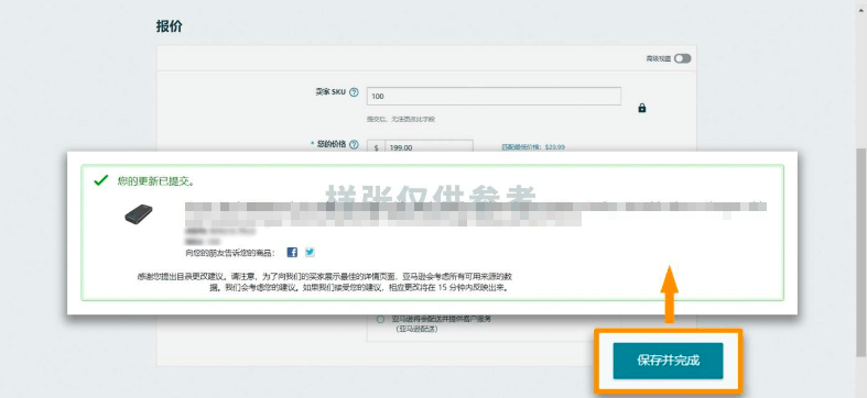 点击“销售此商品>在提供的数据字段中输入你的报价详情(Offer)>点击保存并完成(Save and finish)”。