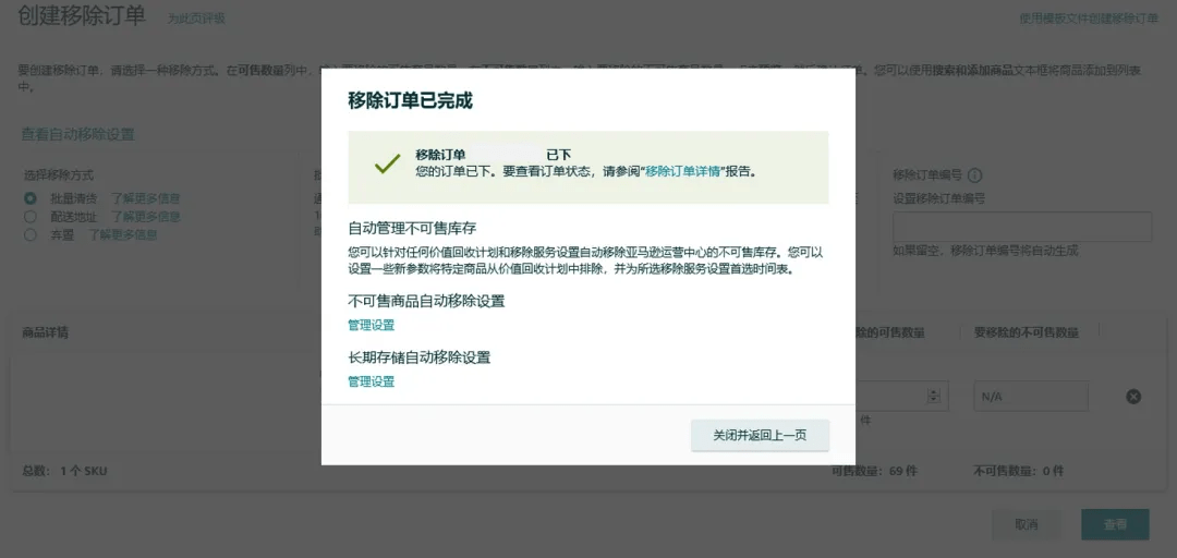 现在,清理冗余库存和买家退货,您又多了一个新帮手,接下来快去卖家平台创建移除订单,体验一下批量清货吧!