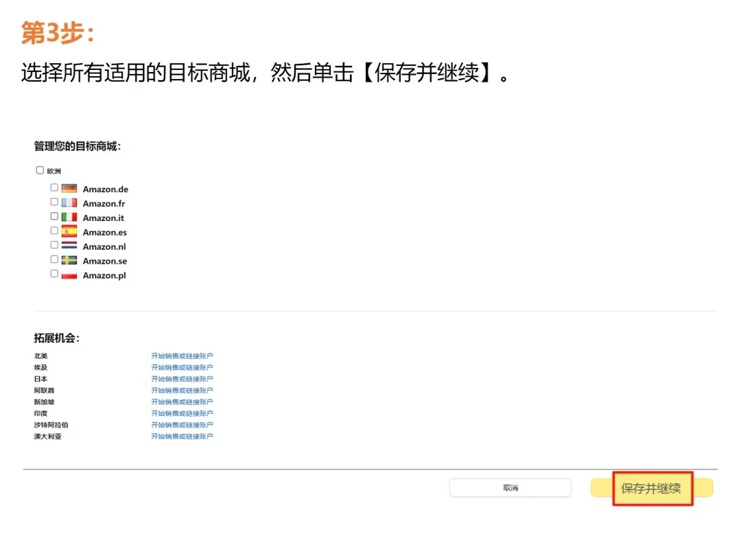 ▲为您的商品在英国及以下任一或全部欧盟店铺中发布商品信息:法国、德国、意大利和/或西班牙