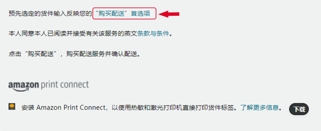 “购买配送”服务(Buy Shipping)会自动筛选可以按时交付并满足亚马逊发货要求(如配送时效、追踪和清关)的配送选项(承运商及配送方式),确保卖家的自配送订单符合亚马逊的配送政策。