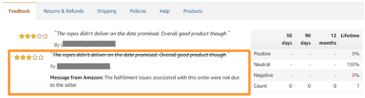 冤!按时发货还收到了差评?@亚马逊自配送卖家,可以隐掉