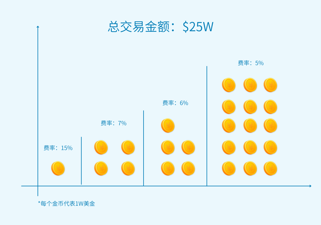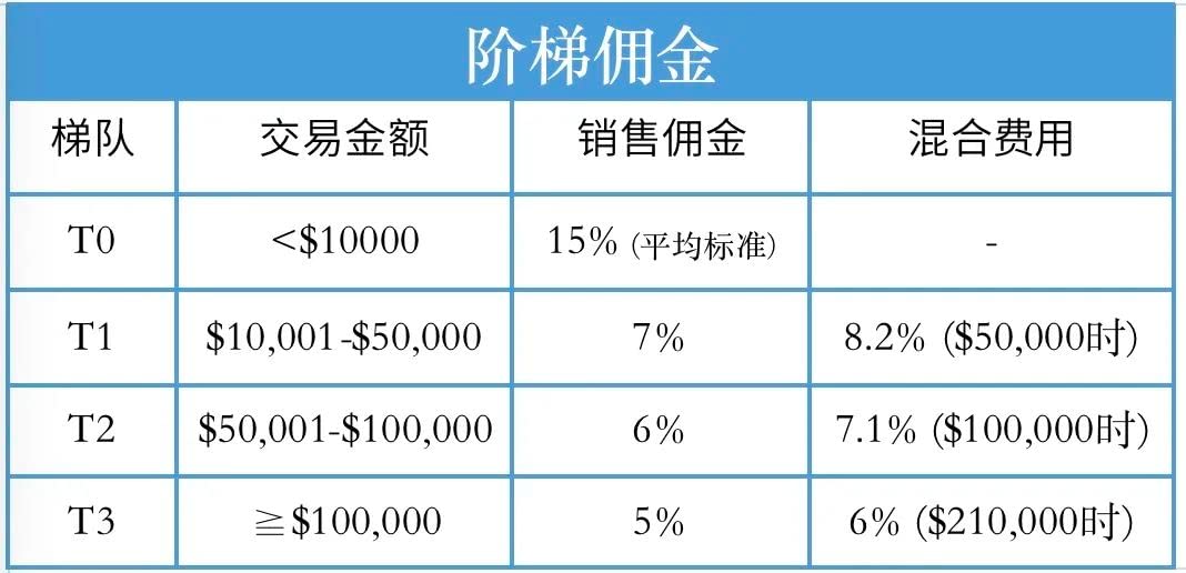 3 第三层级是5万到10万区间,佣金费率6%,需支付3000美金;