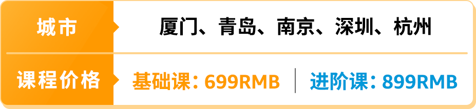 本次亚马逊官方讲堂特训营,首度开启五城线下巡回,跨越南北,只为带给你精彩的课程体验!2天一站式线下培训,官方金牌讲师团队手把手带您玩转亚马逊运营!