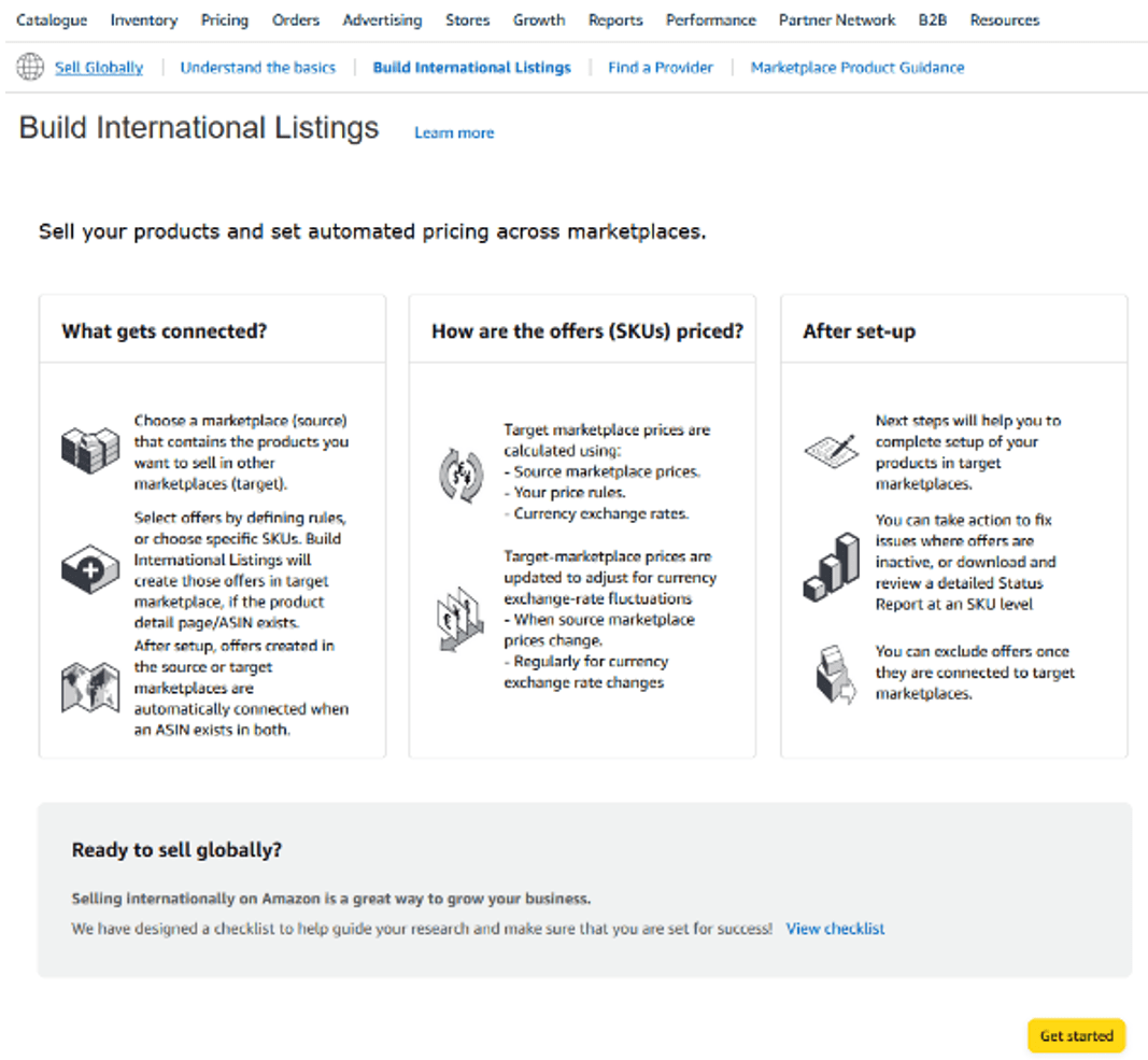 Step1:转至“构建国际商品信息”工具,单击“开始使用”;