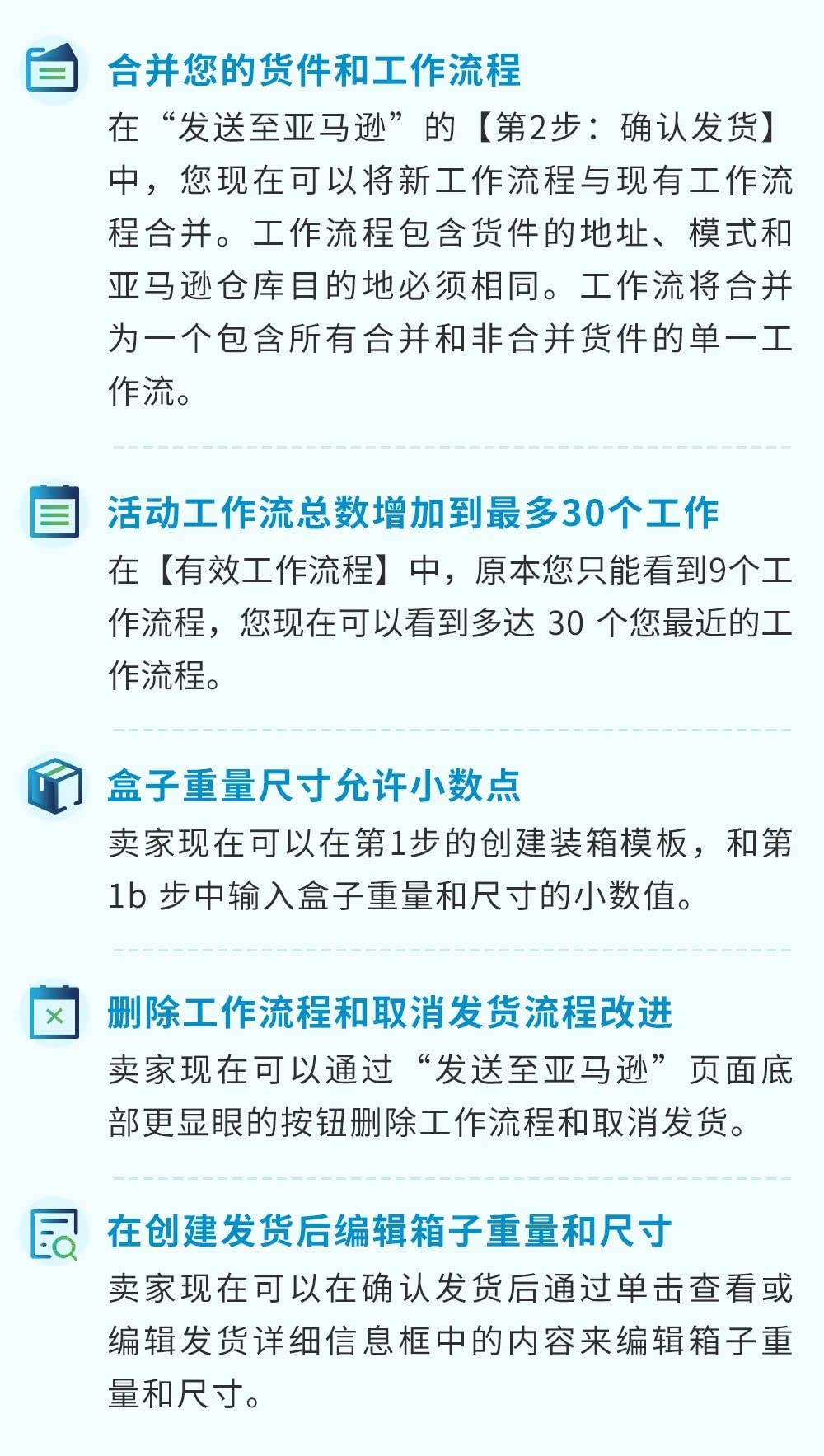 “发送至亚马逊”自上线以来受到了很多关注,也有很多卖家朋友们给我们提供了一些宝贵建议。为了更好地提升卖家体验,针对这项功能,亚马逊做出了如下改进: