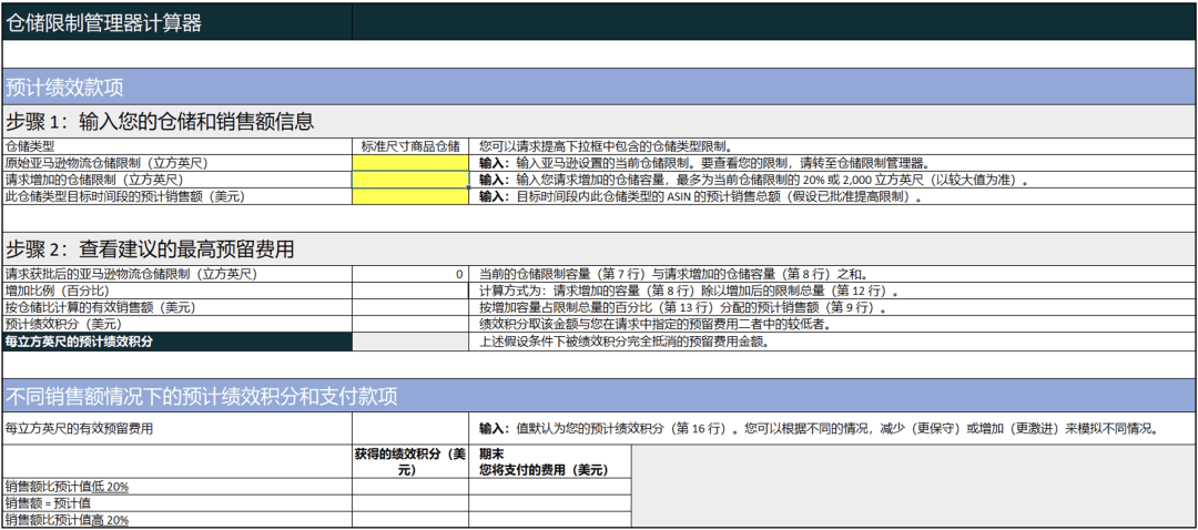 *仓储限制管理器包含一个计算器,可帮助卖家估算申请的潜在成本及抵扣该费用所需的销量。点击此链接查看更多详情。
