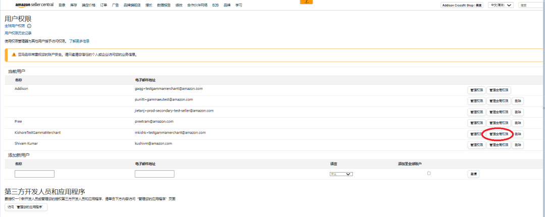▶ 在“库存”部分,打开“亚马逊入仓分销网络——二级用户访问”和“全球FBA库存”两个功能的权限。