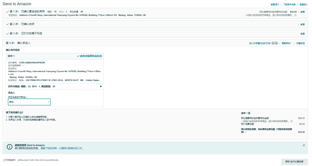 ③亚马逊自动创建从AWD仓库到FBA仓库进货,这些货物由亚马逊物流负责运输
