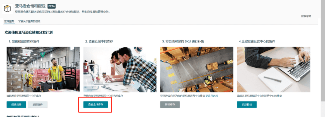 您可以点击“全球库存查看”,查看您在亚马逊的所有库存(包括非美国站),并将他们发送到美国站点的AWD中心。