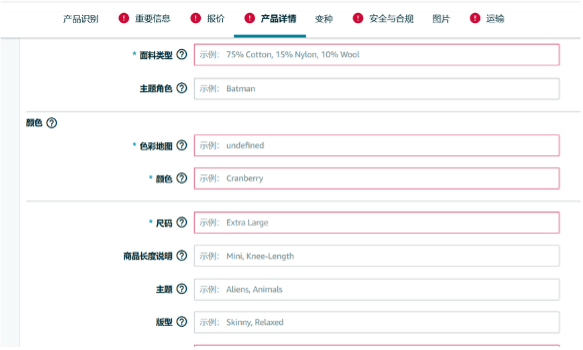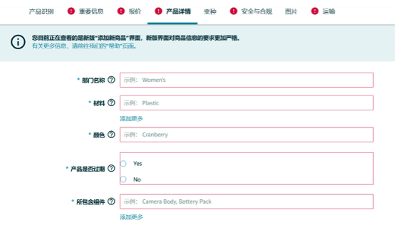 从12/1日起,卖家在上述品类新增商品信息时,都需要为属性提供一个有效值(例如颜色,尺寸),否则商品将不会添加到目录中。