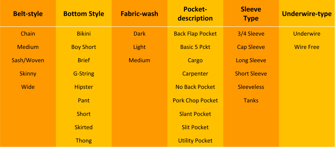 当你购买一件外套时,除了颜色/尺寸/材质/价格等基本信息,还有什么其他的信息是你想要了解或筛选的?比如:有没有腰带?有没有口袋?袖长是什么样的?(无袖,短袖,五分袖还是长袖)?这些就是选填属性。