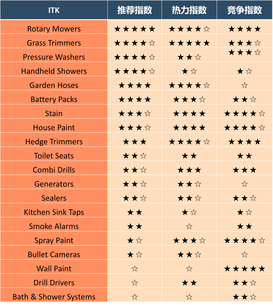 ● 热力指数:考虑了过去特定时间段的销售增长幅度,星级越高表示相对得增速越快