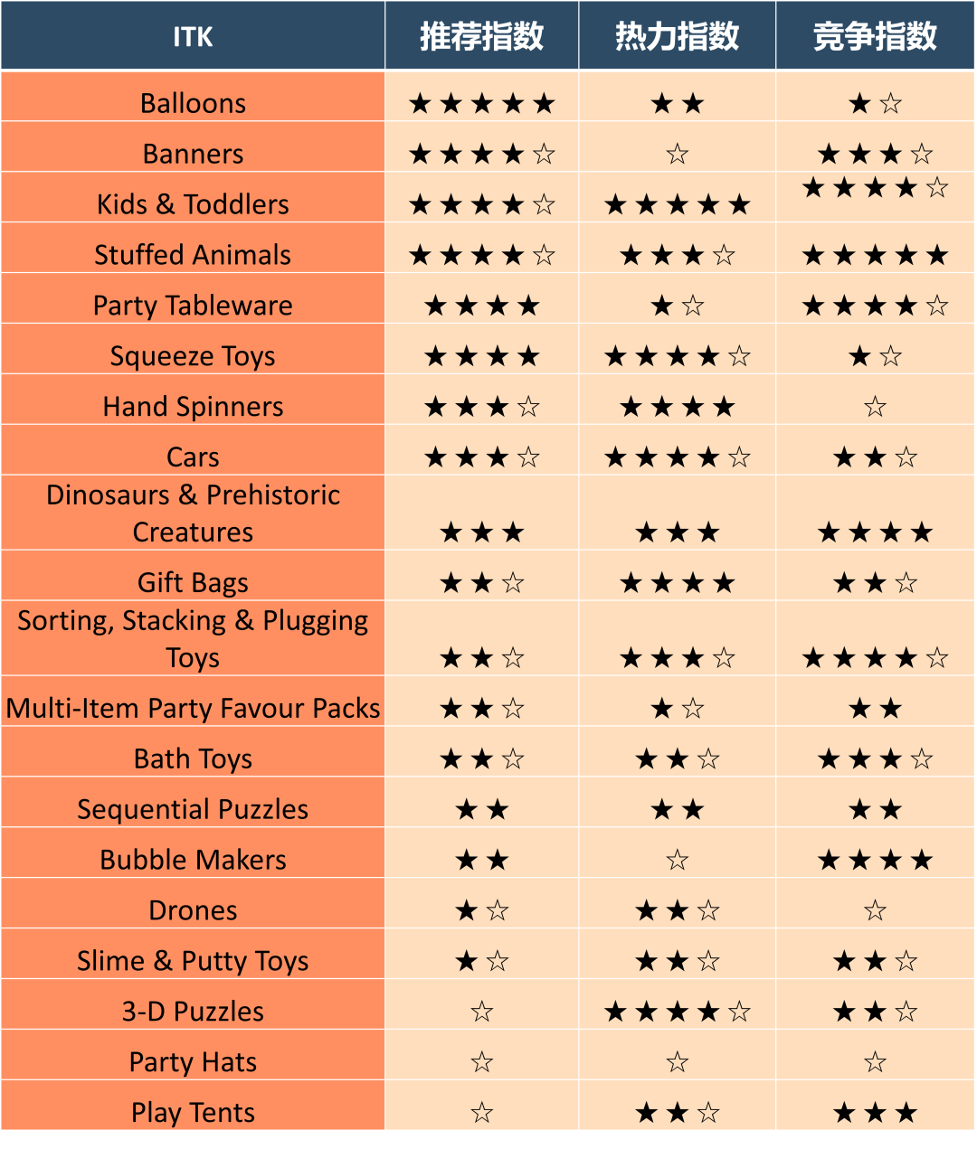 ● 竞争指数:考虑了中国卖家的渗透率情况,星级越高竞争程度越低