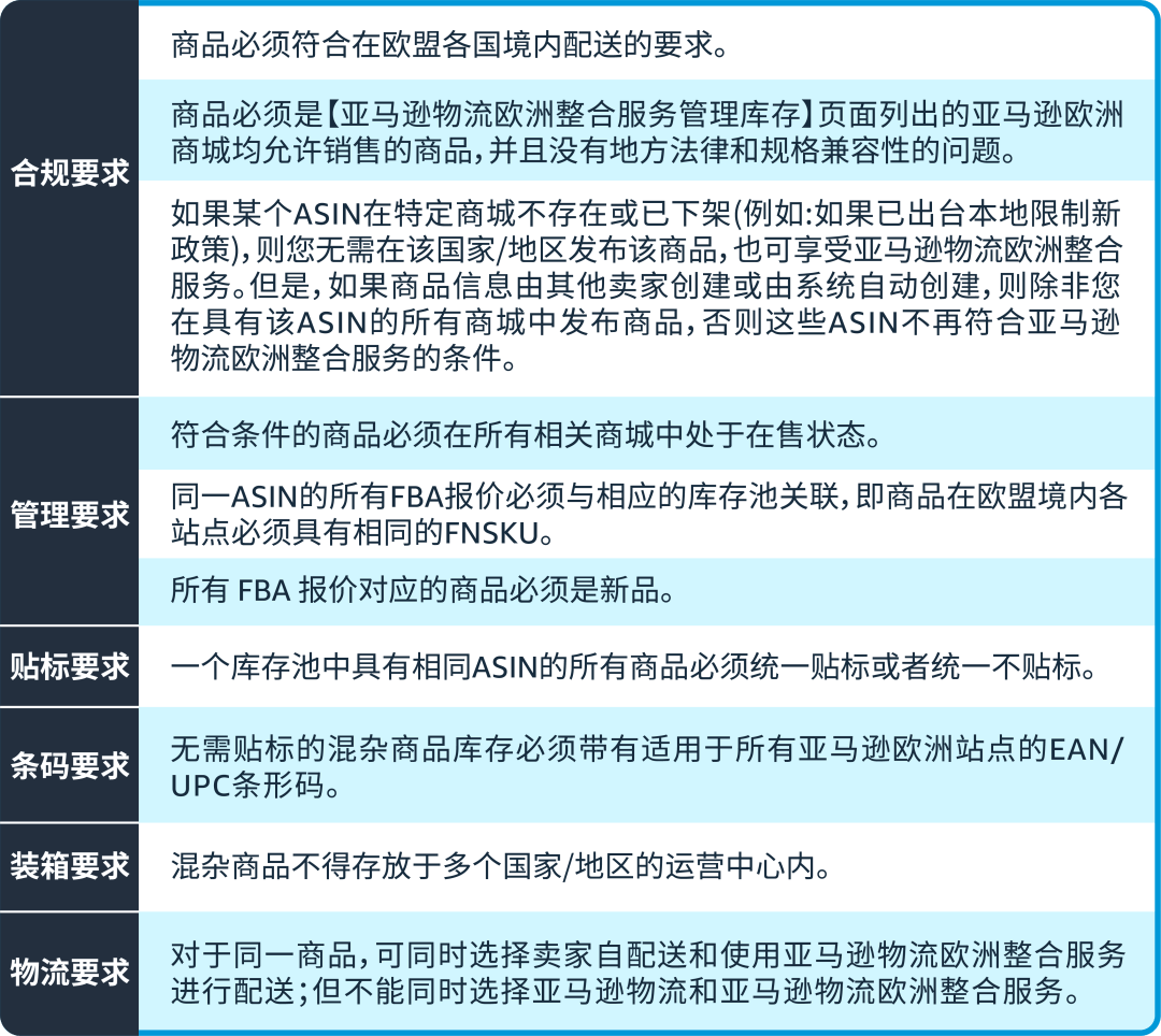 在列出的所有亚马逊欧洲站点中创建在售亚马逊物流ASIN,且将每个ASIN报价关联到相同的库存池,并在Pan-EU中注册该ASIN。