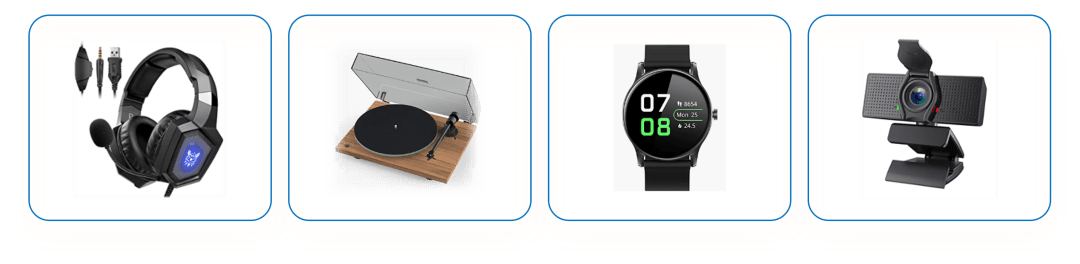 ● 热销产品举例:耳机/耳内耳廓、智能手表、唱机、网络摄像头、3D打印机
