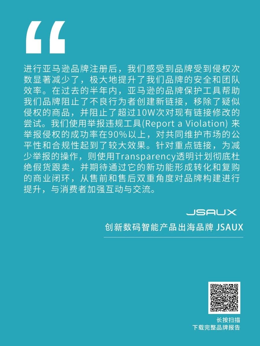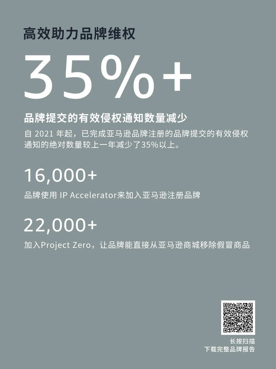 扫描上方⬆️图中二维码,下载完整报告,了解亚马逊品牌保护全新趋势!