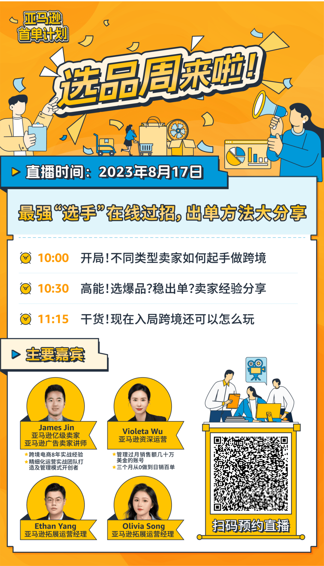 选品没方向?无法及时跟上全球潮流商机?选品小有所成,还想听听更多专业建议?亚马逊实力邀请到众多专家大咖、行业大佬和选品达人助阵本次选品周活动,分享消费趋势洞察、选品方法和潜力品类解析等精彩见解,从专业的角度出发为不同发展阶段的卖家提供有针对性、实用的建议,群英荟萃为您而来!