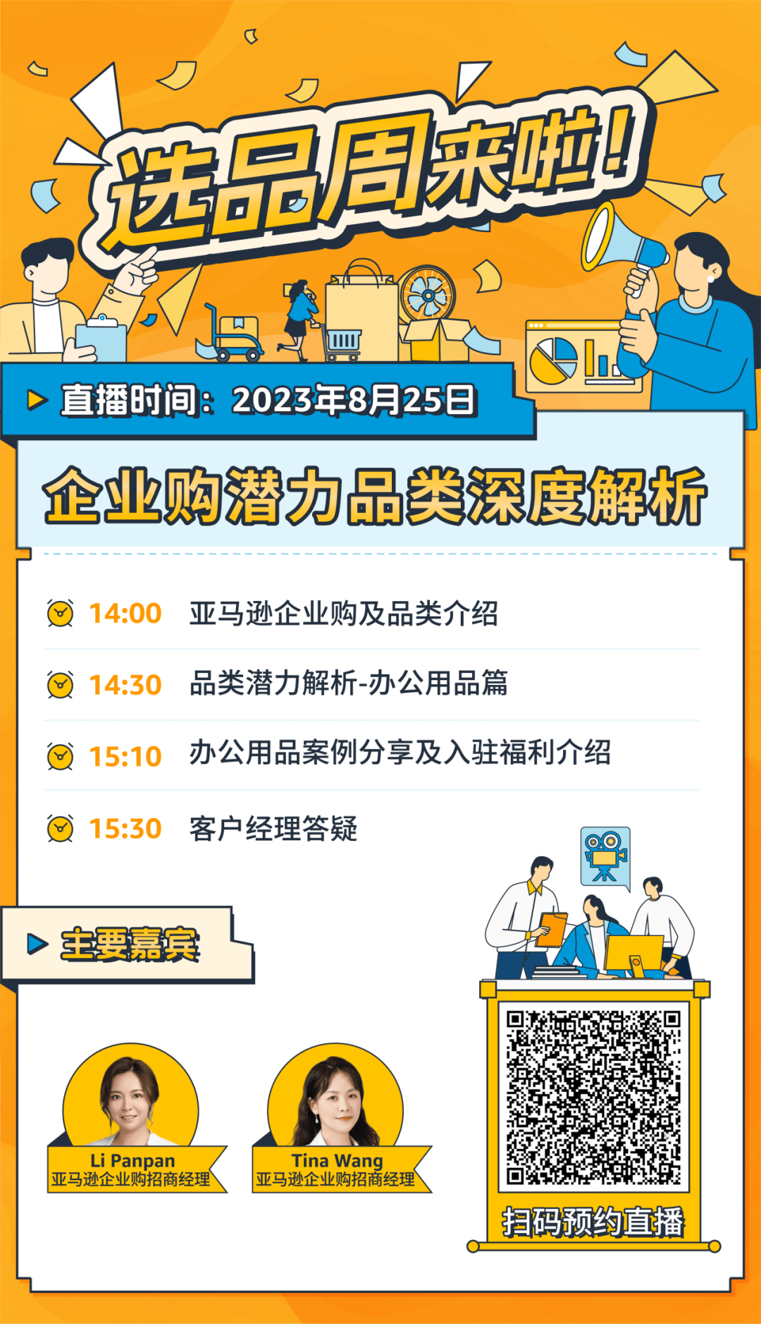 本次选品周期间,将由官方导师为您倾情解读亚马逊企业购需求激增的九大重点品类,包括五大战略品类(MRO工业品、办公用品、学校用品、商用家具和商用IT)和四大潜力品类(商用餐厨、科研实验&医疗保健、酒店用品和维修汽配),助您了解各品类的商机优势和选品要点,快速通关B端选品难题!