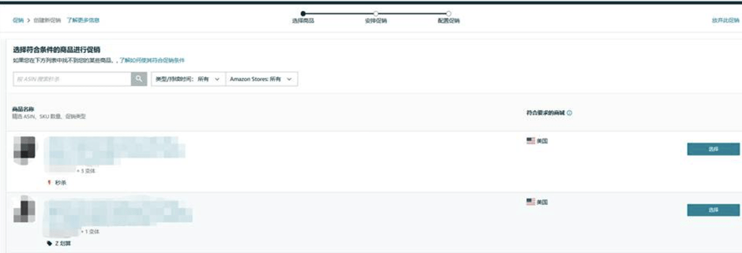 💡 如果卖家点击“创建新促销”后没有出现下图中的Asin推荐,意味着可能暂时没有Deal推荐。