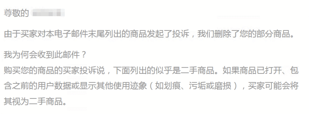 如果卖家收到“二手商品当作新品销售”警告并确认是新品,卖家需了解以下3种常见的导致买家误认为新品是二手商品的原因,再根据自己的实际情况进行申诉: