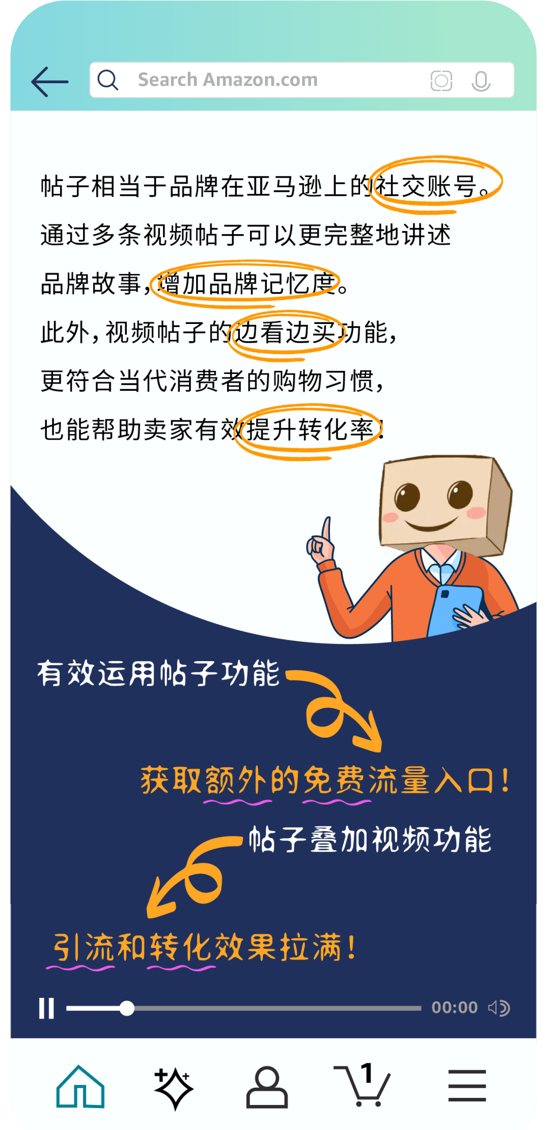 ✅ 在亚马逊商城,发布视频帖子后,品牌商品销量可增加22.5%5